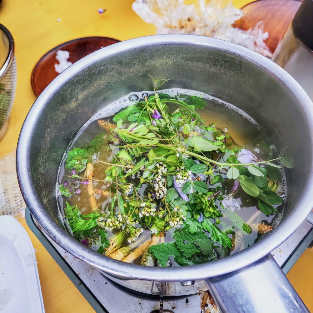 花を含めた様々な野草をしゃぶしゃぶでいただいたんですが、「うっ、美味い!」と箸が止まらないものや、今まで食べたことない面白い味のものなど、自然を堪能でき、恵みに心から感謝できる貴重な食体験。