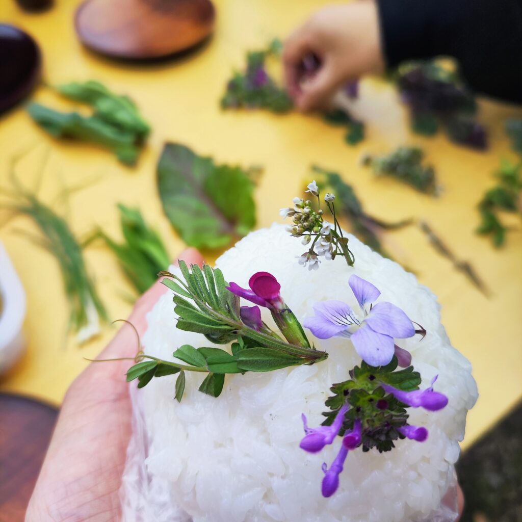 野草しゃぶしゃぶ、野草おにぎり、野草シロップなど